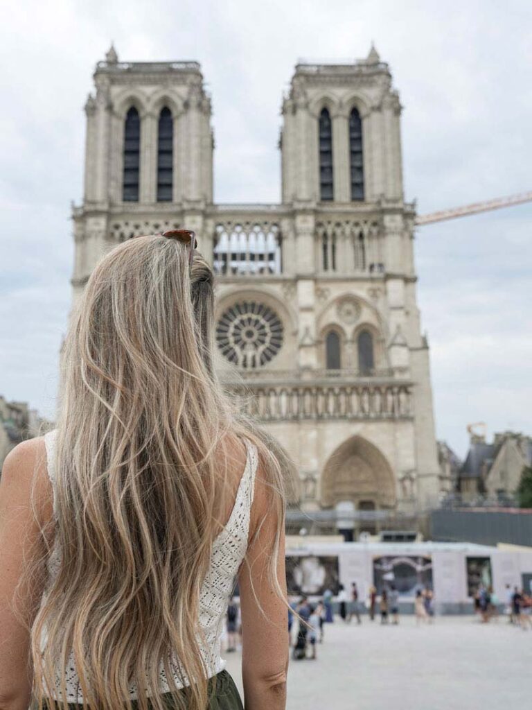 Detrás de la capitalla de Sainte Chapelle llegamos frente a la 📍Catedral de Notre Dame. A pesar de no poder visitarla por dentro por el incendio en 2019, es uno de los puntos importantes que ver en París.